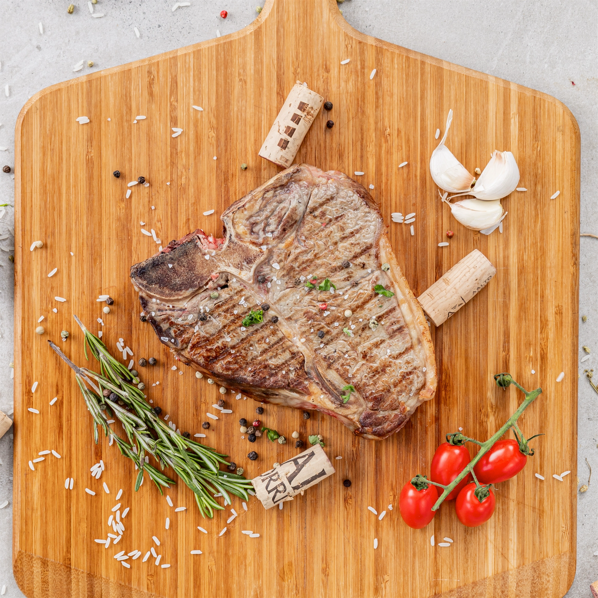 Unser Dry Aged Porterhouse ist ein wahres Meisterstück für Steak-Liebhaber. Es stammt aus dem Rückenstück des Schweizer Rinds und vereint das saftige Entrecôte mit einem zarten Filetanteil – getrennt durch den charakteristischen T-Knochen.